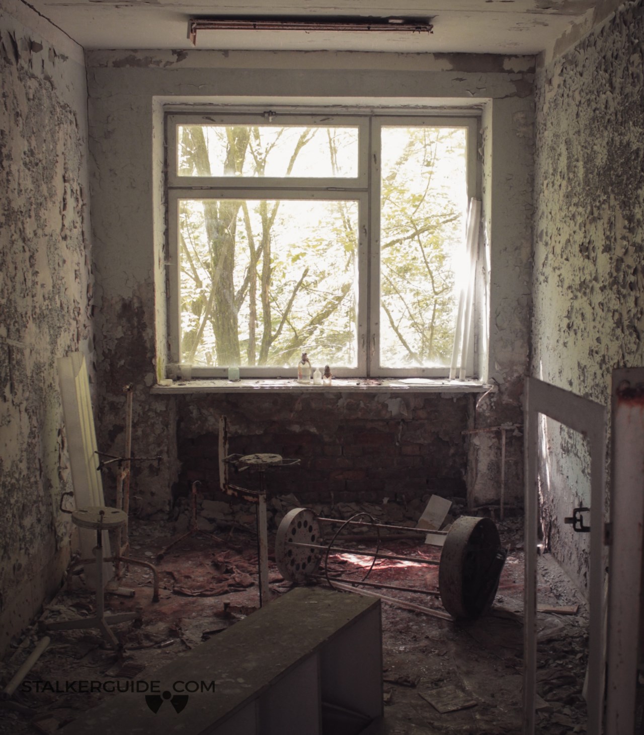 Детальный осмотр МСЧ-126, легко отнимет пару часов. Некоторые считают это место жутким. Вероятно это навеяно фильмами ужасов где действие разворачивается в заброшенной больнице, как правило для психически больных, а неприкаянные души замученных пациентов видят справедливость только в издевательствах над главным героем… Назвать МСЧ-126 жутким местом, лично я, не могу, но вот определённая мрачность здесь имеется, что есть того не отнять. Бесконечные темные коридоры, множество проржавевшей медицинской утвари и хлопающие на ветру двери некоторых помещений делают своё дело. Посетить МСЧ-126 стоит еще и потому, что это одно из менее разграбленных и разрушенных вандалами строений города Припяти.