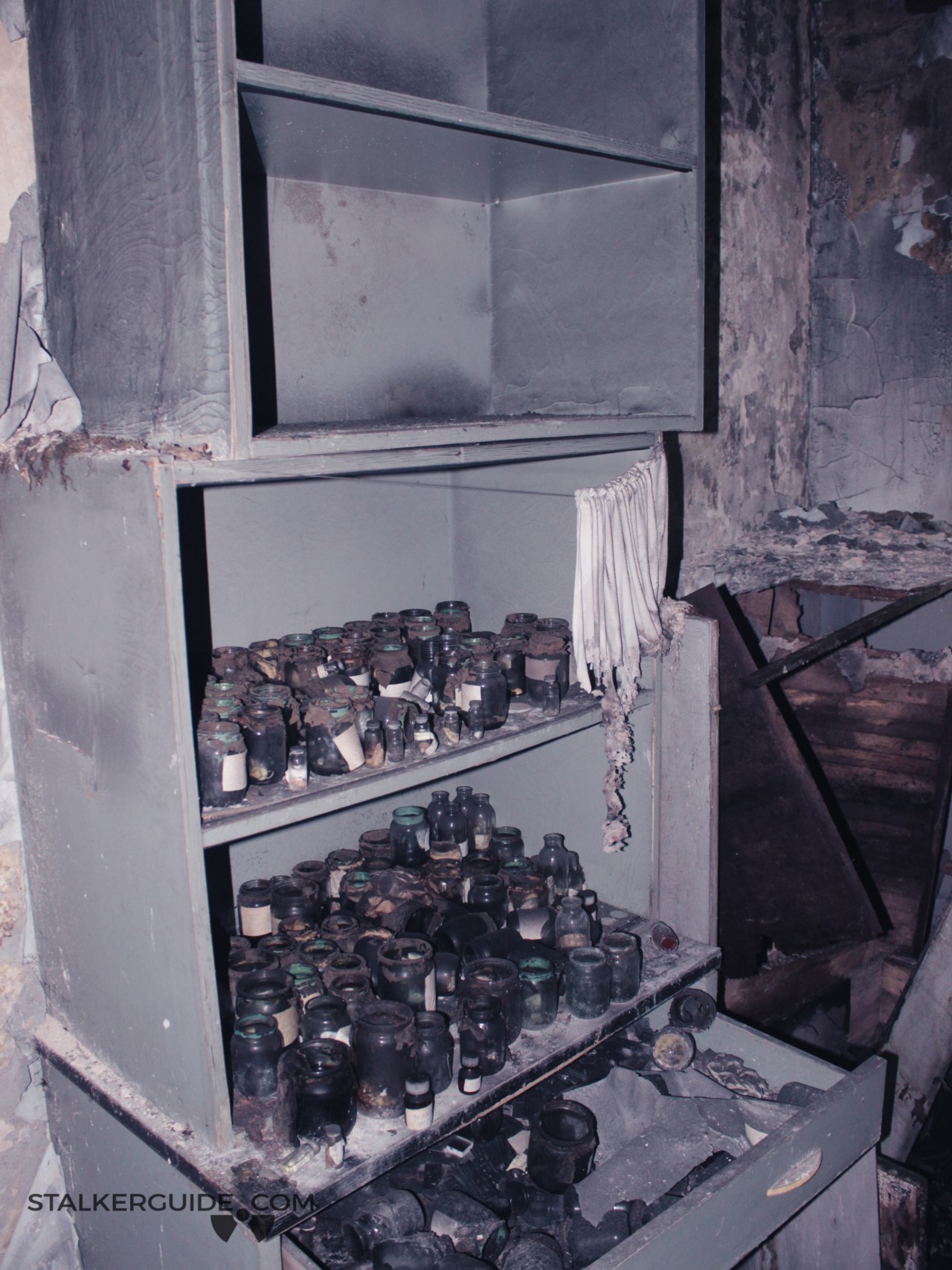Именно сюда поступили работники станции и пожарные получившие смертельные дозы облучения 26 апреля 1986 года. Одежда и снаряжение пожарных были ужасно загрязнены и попросту сбрасывалось грудой в одно из подвальных помещений, по этой причине подвал МСЧ-126 — одно из излюбленных мест «радиофилов». Спустя более трёх десятков лет эти вещи до сих пор «фонят» очень и очень прилично. Насколько прилично? Споры не утихают по сей день, кто-то называет цифры в десятки а то и сотни миллирентген, а кто-то, смеясь над простодушием первых, заявляет о фоне в полтора-два Рентгена, и это только по гамме. В чём проблема? Думаю в том, что сталкеры и прочие энтузиасты не располагают должным оборудованием для замера таких уровней излучений, а администрации зоны отчуждения это ни к чему, они просто засыпали вход в подвал от греха подальше.