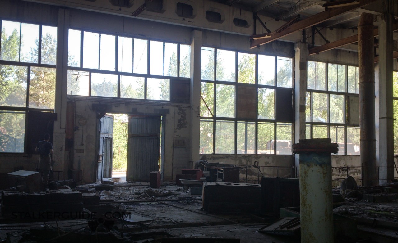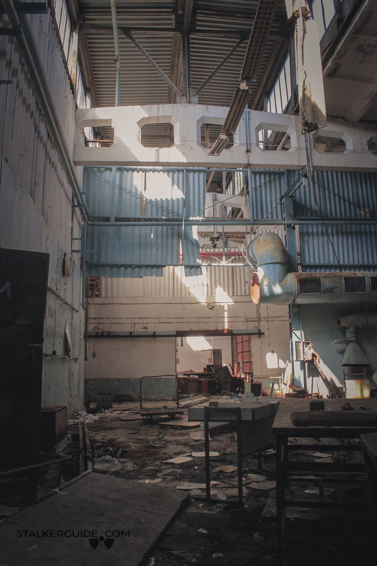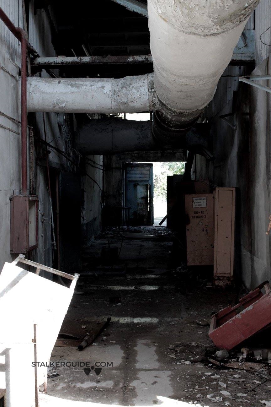 Бродить по цехам, тех.помещениям и коридорам можно очень долго, и хорошо если вам хватит заряда батарей фотоаппарата. Недалеко от главной проходной есть вход в бомбоубежище. После аварии завод работал около пятнадцати лет, и помимо прочего, здесь занимались исследованиями образцов различных материалов с руин четвёртого энергоблока. Так, похоже, и оказался металлический ящик с песком в одном из помещений бомбоубежища. Многие любят посещать это место из-за того, что черный песок в ящике неплохо «фонит», чем сводит с ума бытовые дозиметры и будоражит разум неискушенного посетителя. Мы не рекомендуем посещать это место в виду бессмысленности сего действа, интересного ноль, а риск вдохнуть неопределённое кол-во «горячих» частиц — большой. Планируя посещать это место, запаситесь, хотя-бы, респиратором.