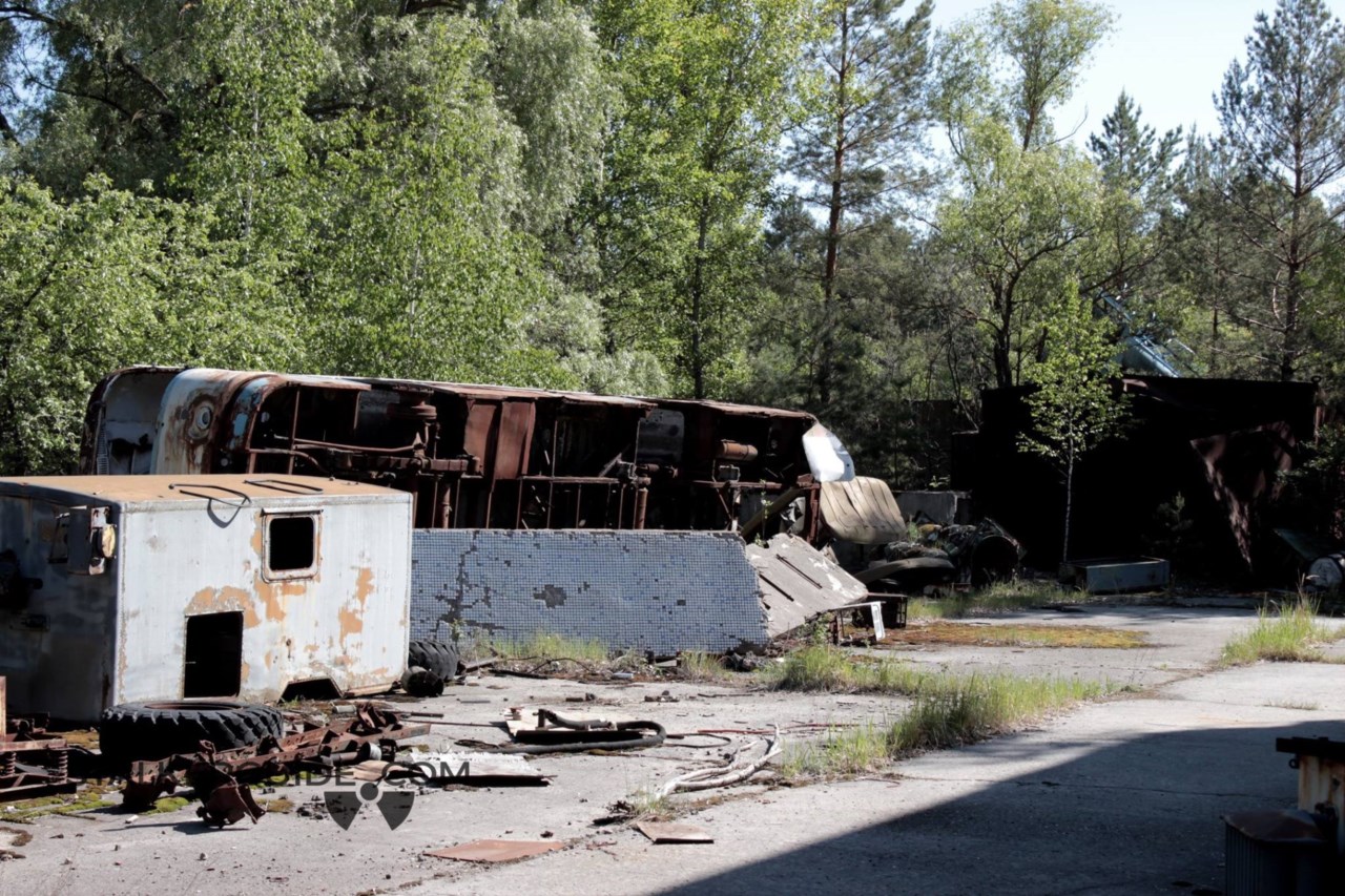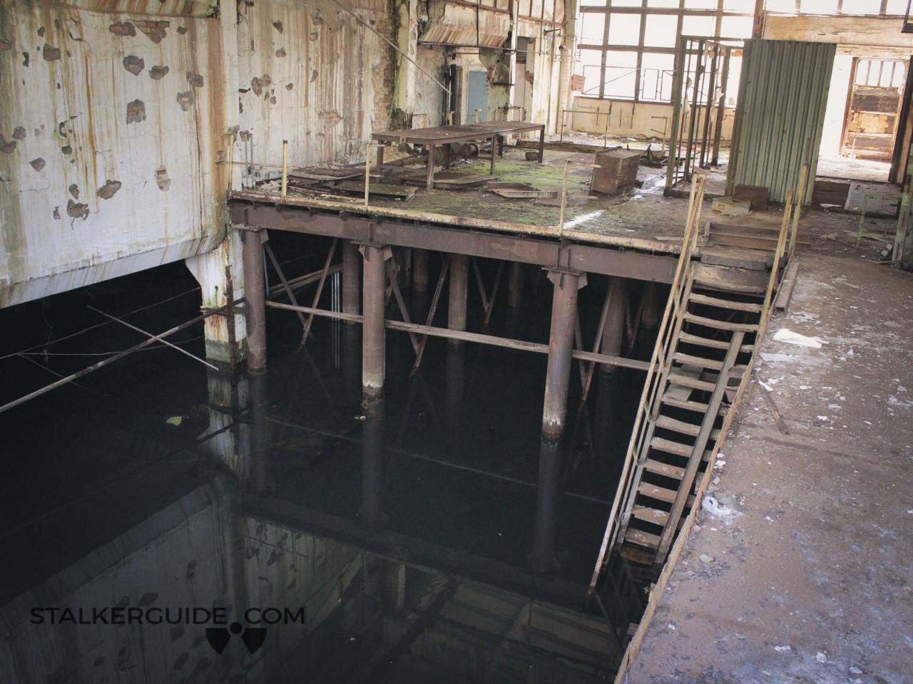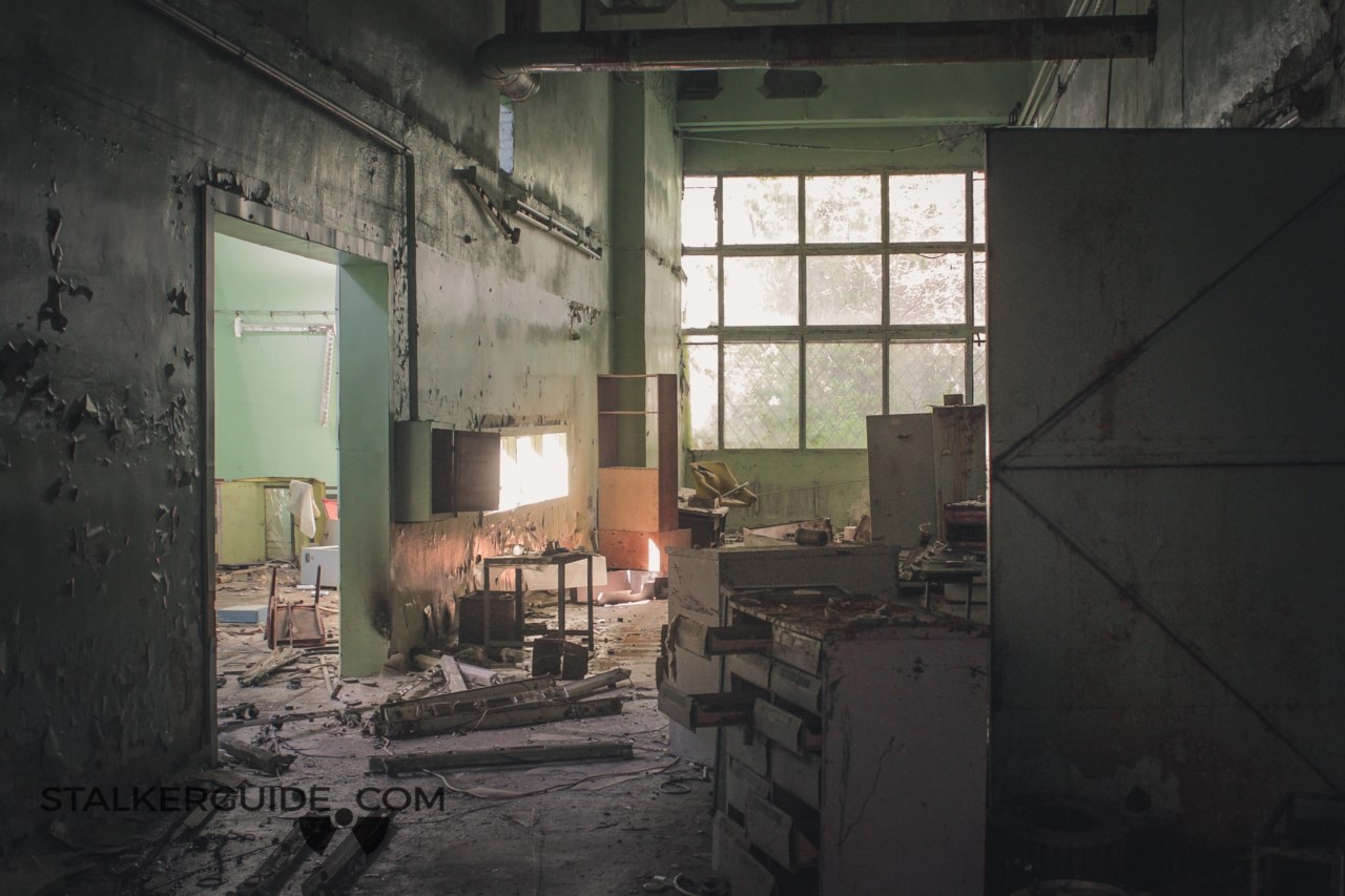 Бродить по цехам, тех.помещениям и коридорам можно очень долго, и хорошо если вам хватит заряда батарей фотоаппарата. Недалеко от главной проходной есть вход в бомбоубежище. После аварии завод работал около пятнадцати лет, и помимо прочего, здесь занимались исследованиями образцов различных материалов с руин четвёртого энергоблока. Так, похоже, и оказался металлический ящик с песком в одном из помещений бомбоубежища. Многие любят посещать это место из-за того, что черный песок в ящике неплохо «фонит», чем сводит с ума бытовые дозиметры и будоражит разум неискушенного посетителя. Мы не рекомендуем посещать это место в виду бессмысленности сего действа, интересного ноль, а риск вдохнуть неопределённое кол-во «горячих» частиц — большой. Планируя посещать это место, запаситесь, хотя-бы, респиратором.