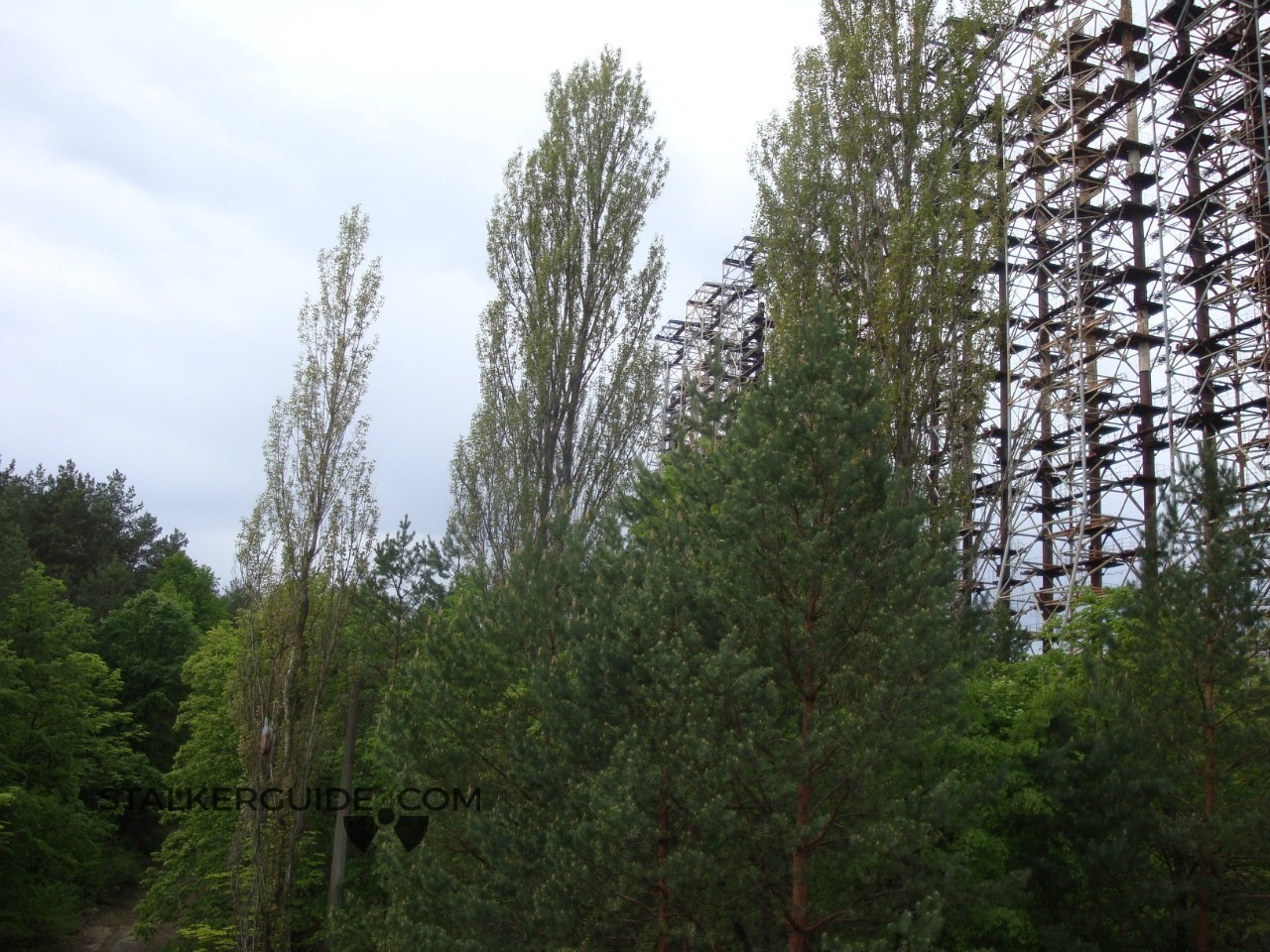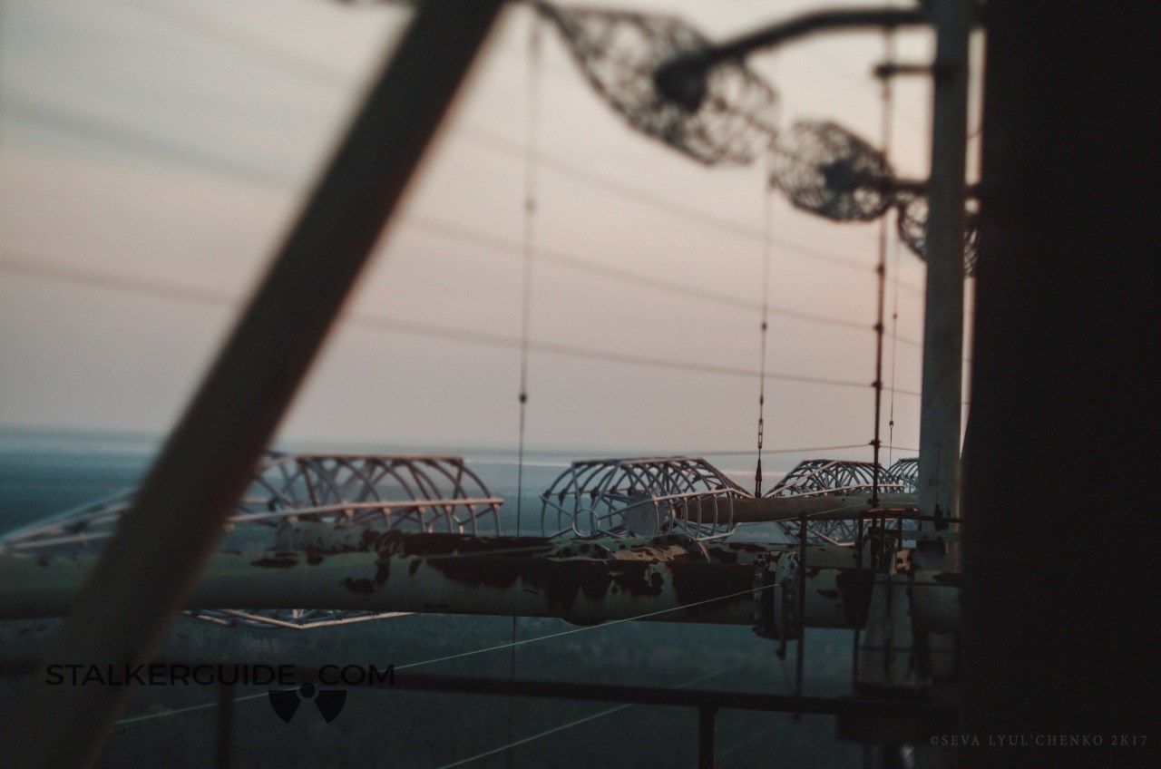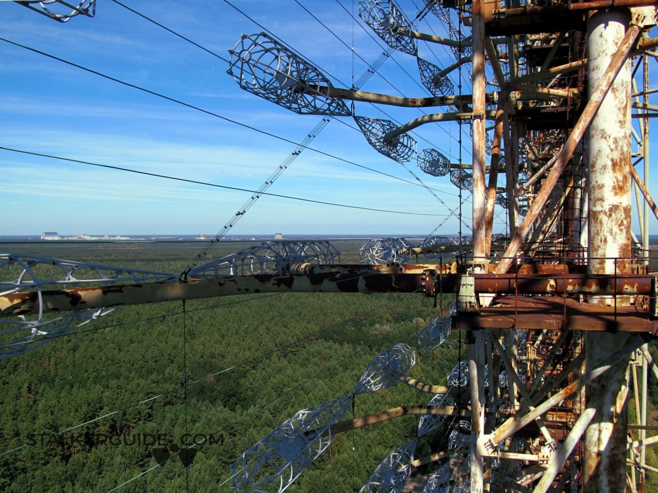 «Дуга» — один из объектов наследия холодной войны. До аварии на ЧАЭС это место считалось секретным и на картах обозначалось малозаметной надписью «пионерлаг.». Пионералагеря, конечно, не было, зато был целый городок под названием «Чернобыль-2» в котором жил обслуживающий «Дугу» персонал и их семьи. Чернобыль-2 тоже не был отмечен на картах, но о том что здесь никак не пионерлагерь, жители могли догадываться глядя на пейзаж. Почему? Да потому что в высоту ЗГРЛС (загоризонтная радиолокационная станция) была около 150 метров. Такую исполинскую конструкцию видно практически с любой точки зоны отчуждения. Главное предназначении ЗГРЛС — обнаружение межконтинентальных баллистических ракет на дистанции от 900 до 3000 км.